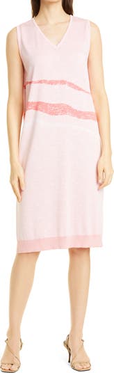 Brushstroke stripes accent a sleeveless knit dress that you can rely on when the weather can't make up its mind.