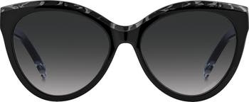 Signature patterns from the frames to the tips define these sleek cat-eye sunglasses featuring a subtle laser-etched logo at the lens.