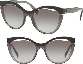 Slender cutouts create a striking, modern vibe on sleek cat-eye sunnies fashioned with a bold contrast topline and shining rivets at the temples.