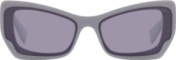 An irregular silhouette lends a retro-inspired look to these Italian-crafted sunglasses fitted with protective lenses.