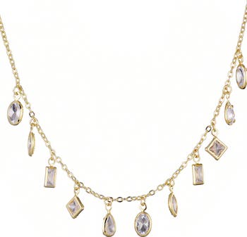 Bezel-set crystals done in a variety of shapes bring visual intrigue to this delicate chain necklace finished in high shine.
