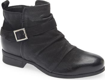Burnished leather and ruched, textured vamp updates the rustic look of a tough boot furnished with a cushioned footbed to keep up with any adventure.