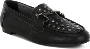 Polished studs add subtle shine to your every stride in this grained leather loafer built with light cushioning and a durable rubber sole.