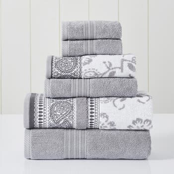 - - 6-piece set - Color: stone - Imported Set includes: - 2 bath towels (27" x 54" each) - 2 hand towels (16" x 28" each) - 2 wash cloths (13" x 13" each) Orders cannot be shipped to Canada, Puerto Rico, APO, FPO or P.O. Boxes.