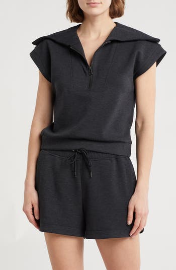Designed for movement and made to stand out, this cropped half-zip pullover sports a wide collar, short cap sleeves and supersoft fabric that keeps you comfortable from gym sessions to casual hangouts.