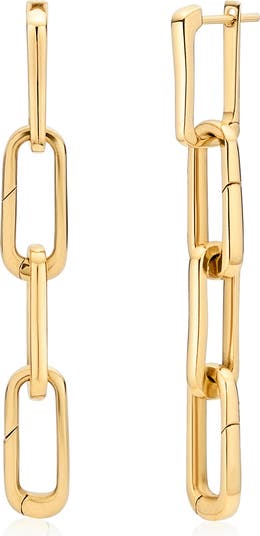 From a collection of playfully versatile pieces, these dangling earrings can be can be worn as is or customized with less links and\/or an added charm.