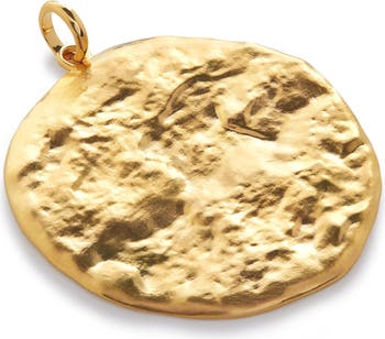 Satin shine and a hammered finish give a seaworn look to this sterling silver pendant charm that's plated with recycled 18-karat gold.