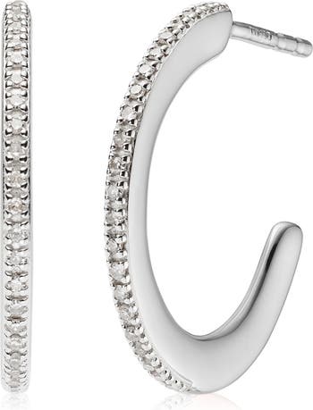 Skinny three-quarter hoops covered in diamond pavé exude timeless elegance.