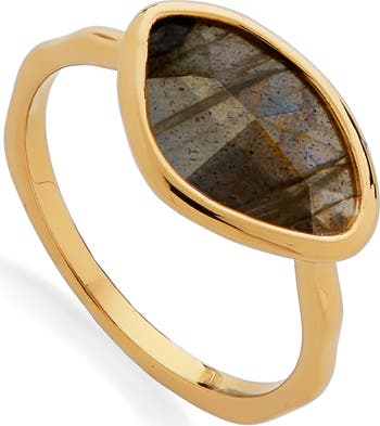 A bezel-set hand-cut semiprecious stone adorns a beautiful 18-karat gold vermeil ring crafted from warm 18-karat-gold vermeil.