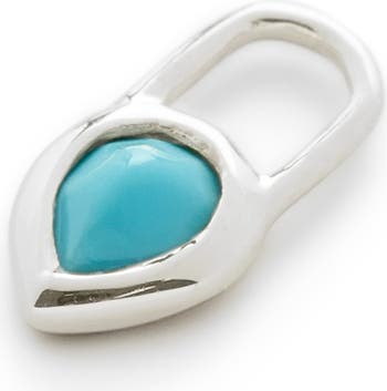 A teardrop-shaped turquoise stone is framed with gleaming 18-karat gold vermeil or sterling silver, highlighting the depth of its bright hue. pair this petite charm with your favorite huggies, hoops or studs for a personalized look.