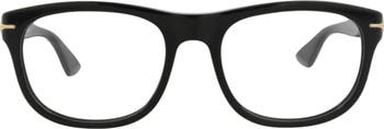 Subtle hardware at the temples add understated style to these square optical frames fitted with prescription-ready lenses.