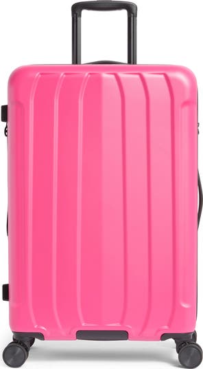 Exterior features: Water-resistant ABS material with a textured surface ensures lightweight durability and protection. A telescoping handle maximizes comfort and control for users of different heights. Eight-wheel spinners glide effortlessly to navigate through busy airports.