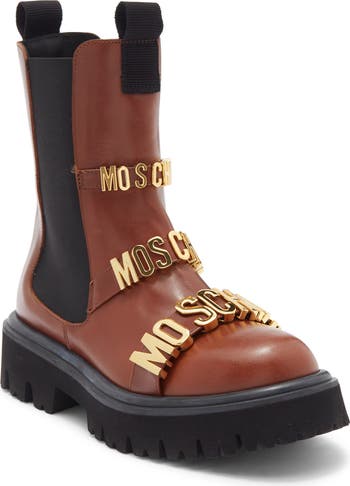 Glossy logo hardware puts a signature stamp on this smooth leather Chelsea boot framed by dual pull tabs and boosted by a durable lugged sole.