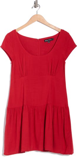 Subtle ruching under the bust and along the tier enhances the playful charm of this drop-waist minidress.