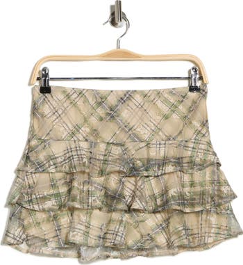 Retro charm meets preppy flair in this ruffle-trim miniskirt, cut to a leg-baring length from stretch-lace for a fun, flattering style.