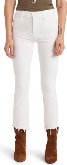 Every closet craves these crisp-white jeans styled with an easy high rise and fringed step hems.