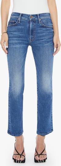 Slim through the thighs and slightly flared below the knees, these made-in-LA stretch jeans stand out for their easy fit and classic faded finish. MOTHER has adjusted the proportions of their denim styles to complement petite body types. These LIL' MOTHER jeans feature a higher knee placement, along with shorter inseams and rises, so they hit correctly at every point.