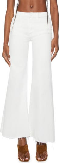 Raw frayed hems give free-spirited detail to kicky wide-leg jeans cut from stretch-kissed denim.