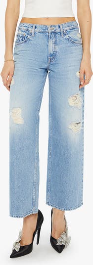 Strategic rips give you room to move in these nonstretch jeans crafted in a slightly cropped, wide-leg silhouette.
