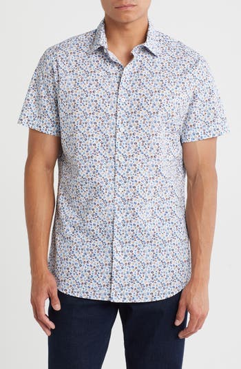 A bold pattern turns up the style points of this refined button-up shirt curt from crisp cotton fabric in a fit that's as ready to relax as you are.