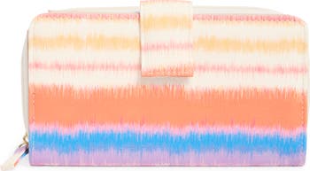 An abundance of dedicated pockets keeps your valuables well‑organized in a bifold wallet made from wavy‑printed faux leather.