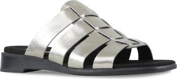 Contoured cushioning brings support to a low-profile sandal topped with a gladiator-style strap.