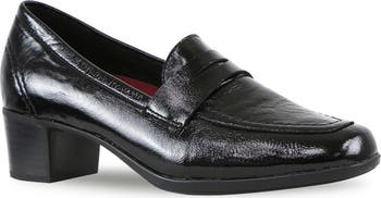 A chunky stacked heel elevates this street-chic loafer pump in supple lambskin leather adorned with a classic penny keeper strap.