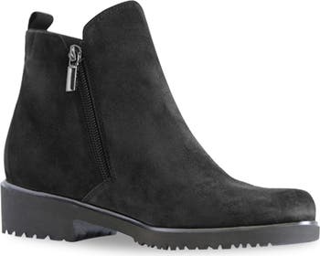 A breathable sock liner and built-in arch support add everyday comfort to a streamlined bootie complete with dual side zippers.