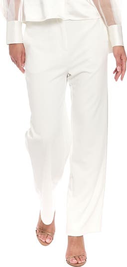 Tonal, tux-inspired satin stripes add to the casual-chic vibe of breezy, high-rise pants cut from smooth crepe fabric in a relaxed silhouette that flares below the knee.