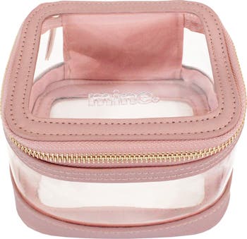 Keep your beauty or tech must-haves in sight with this transparent cube organizer trimmed in faux leather.
