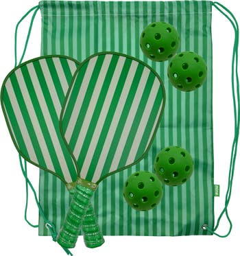 Take your game to go with this playfully-printed bag, matching set of four balls and standard paddles with soft foam handles for a comfortable cushioned grip.