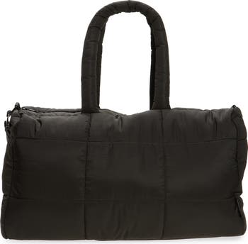 Ready for your overnight getaway or gym session, this quilted duffle bag can hold all your essentials with its spacious, structured barrel silhouette.