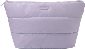 Keep your makeup and brushes organized during your next weekend getaway with this chic cosmetic pouch featuring plush channel quilting.