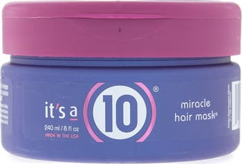 Developed to respond to the demands of today's color treated, heat styled, and otherwise processed hair, It's a 10 Miracle Hair Mask is a simple-to-use, conditioning treatment made to enhance softness and smoothness. Flexible enough to be used as a daily conditioner and also intensive enough to be used as a periodic deep-conditioning treatment, the Miracle Hair Mask delivers unparalleled results for dry, damaged, or over-processed hair. - Size: 8oz - For directions and ingredients, see "Additional Info" - Made in USA