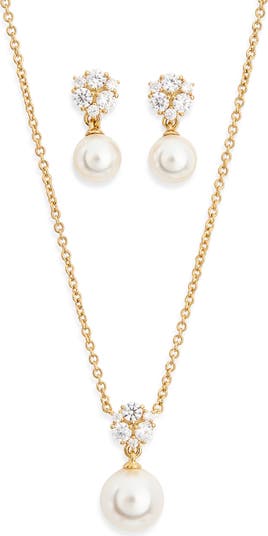 Complete an elegant ensemble with this sparkling and lustrous set including stud earrings and a matching pendant necklace.
