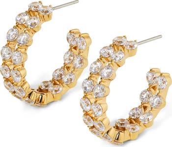 Two rows of sparkling cubic zirconia cover these hand-polished hoop earrings for a look that's special occasion-worthy.