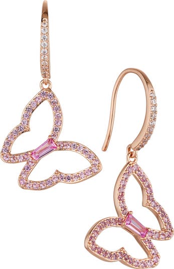Cubic zirconia-covered butterflies dangle gracefully from these sparkly drop earrings hand polished to perfection.