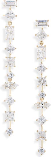 Bring sparkle to your lobes with these dainty linear drops boasting white crystals in different cuts.