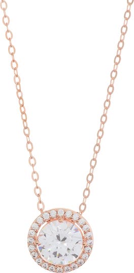 Add a touch of elegance to your ensemble with this halo pendant necklace embellished with sparkling CZ.