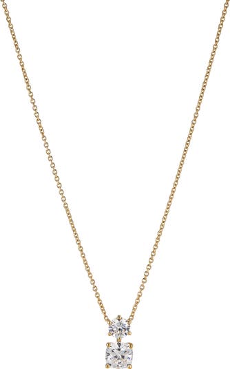 A pair of solitaire-cut cubic zirconia gives this pendant necklace twice the shine.