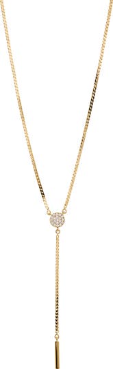 A central disc sparkling with cubic zirconia pavé serves as the focal point of this elegant Y-necklce.