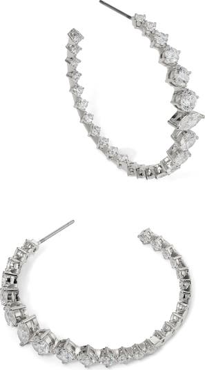 Cubic zirconia lines the inner and outer circumference of these bold hoop earrings.