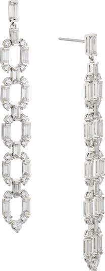 Mixed cuts of cubic zirconia shaped like icy chains illuminate these stunning drop earrings that are hand-polished to an exquisite shine.