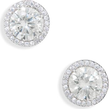 Perfect for everyday wear, these sparkling halo studs are centered with faceted crystals.