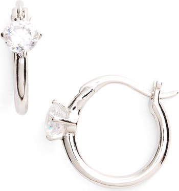 Set with a pair of lovely round cubic zirconias, these petite earrings are the perfect combination of classic solitaire studs and hoops.