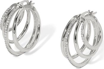 Sparkling cubic zirconia illuminate the layered silhouette of these hand-polished hoop earrings.