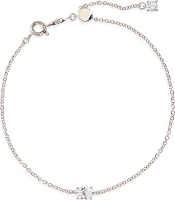 A sparkly oval-cut cubic zirconia centers this dainty bracelet finished in polished rhodium for elegant shine.