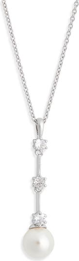 A faux pearl drop brings an air of elegance to this lariat-styled necklace that makes an eye-catching statement for special occasions.