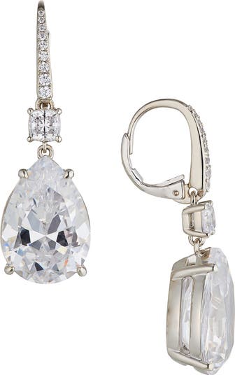 Pavé lever-back earrings suspend pear-cut cubic zirconia that bring decadent, icy sparkle to your evening looks.