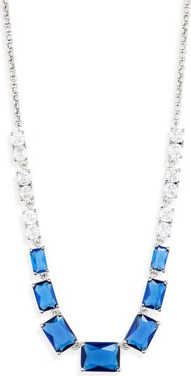Elevate your daytime or evening ensembles with this curved necklace plated in icy rhodium and showcasing cubic zirconia stones.